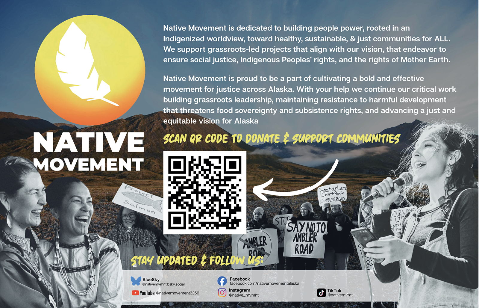 Native Movement is honored to do this work within community and to do so in partnership with many other ally organizations. Over the years, we have been able to witness the results of grassroots efforts across the state as seen through increased positive visibility of Alaska Native people, a shift in the dominant narrative, deeper understandings of on-going settler colonialism, increased voter engagement, and building and supporting new leaders. We look forward to continued learning, collective growth, and revolutionary movement building.